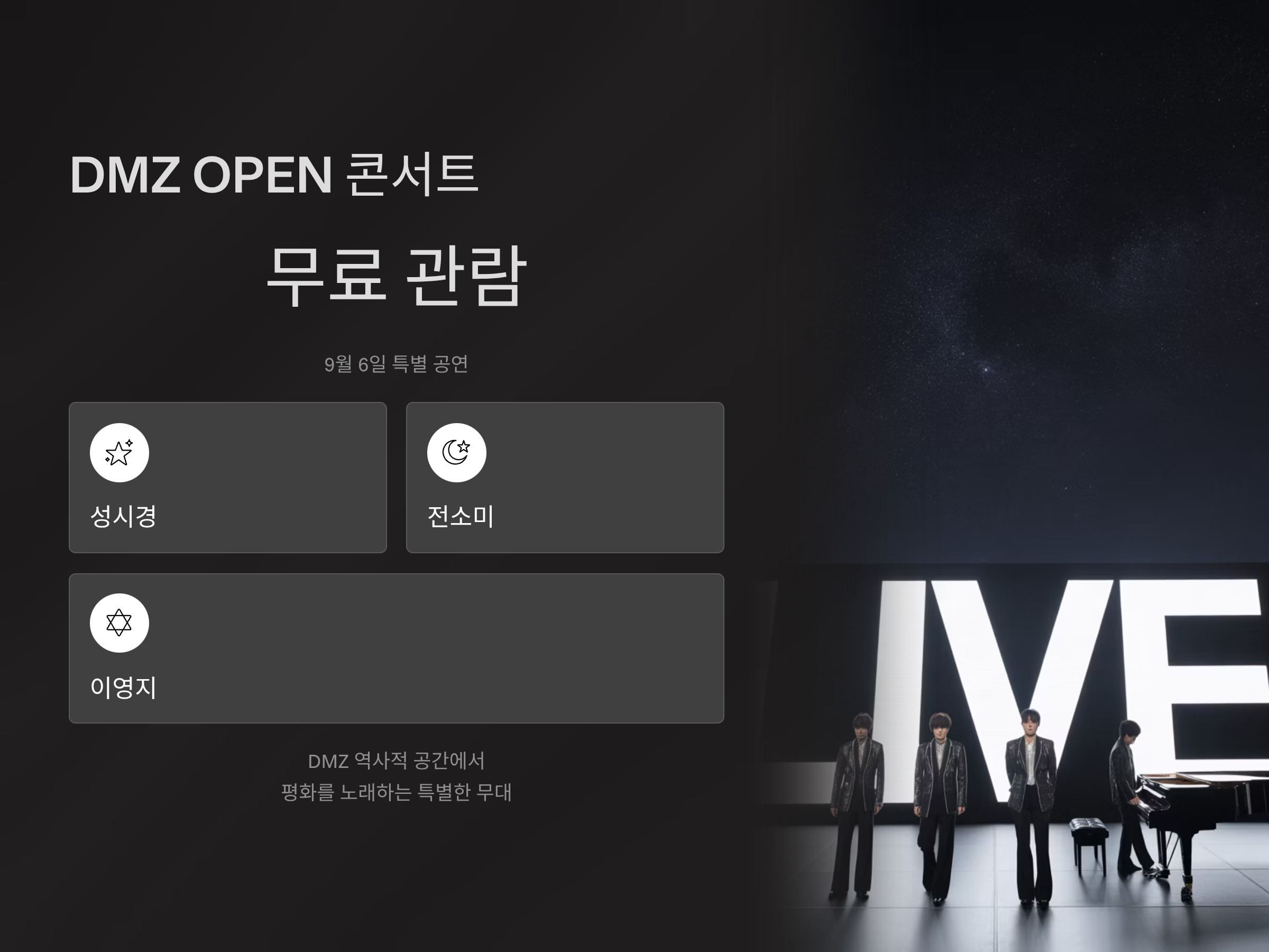하이라이트 중 하나는 바로 9월 6일에 열리는 'DMZ OPEN 콘서트'입니다.