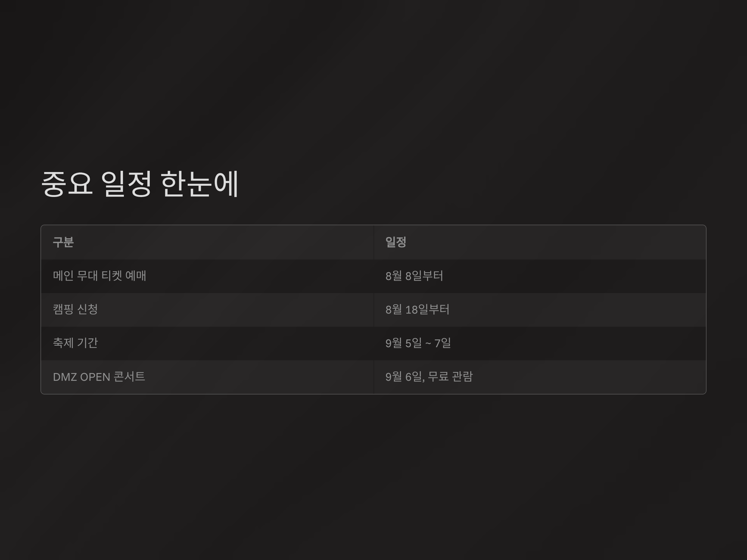 | 메인 무대 티켓 예매 | 8월 8일부터 |