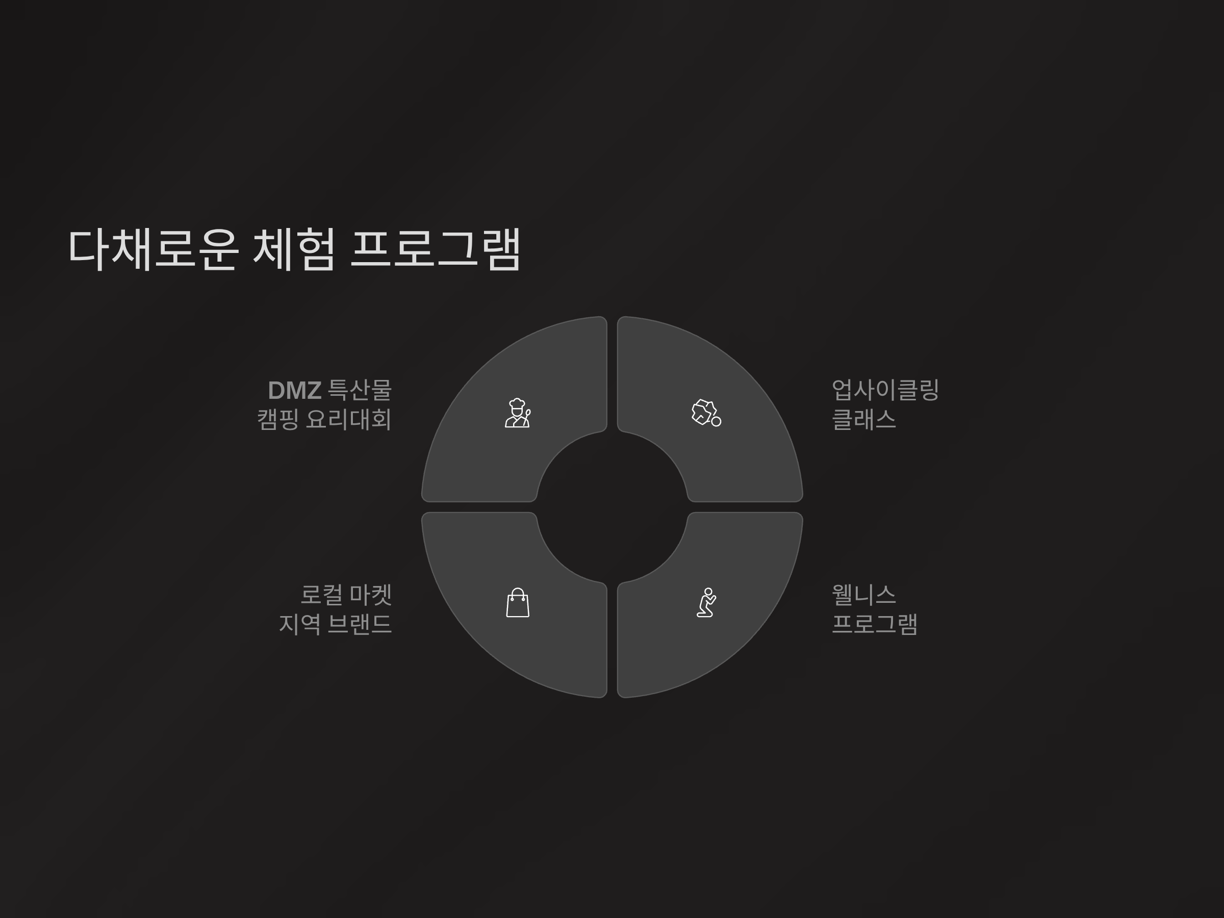이번 축제에서는 지역 특산물로 요리 대회를 펼치는 'DMZ 특산물 캠핑 요리대회'부터, 친환경을 실천할 수 있는 업사이클링 클래스, 몸과 마음을 챙길 수 있는 웰니스 프로그램까지 다채로운 체험이 준비돼 있습니다.