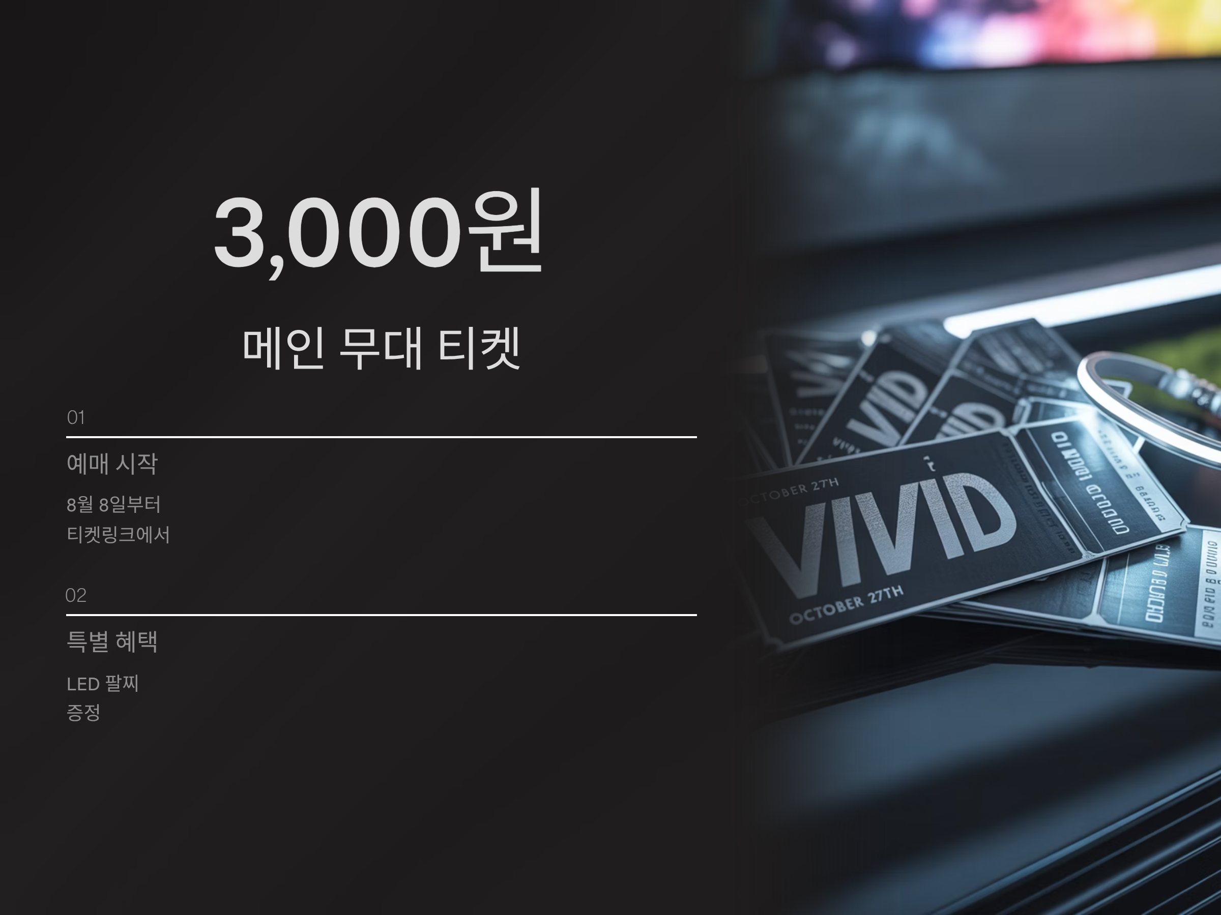 티켓 예매자에게는 LED 팔찌도 증정된다고 하니, 밤이 깊어갈수록 더 빛나는 무대를 즐길 수 있겠죠.